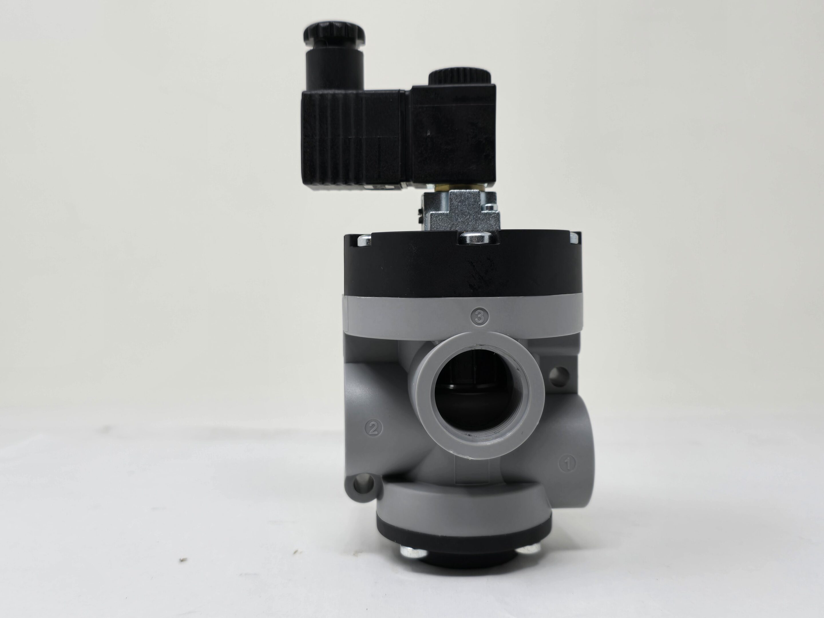 Elettrovalvola per vuoto, pilotaggio interno con vuoto, 3 vie n.c. da ¾” con bobina 24Vdc.